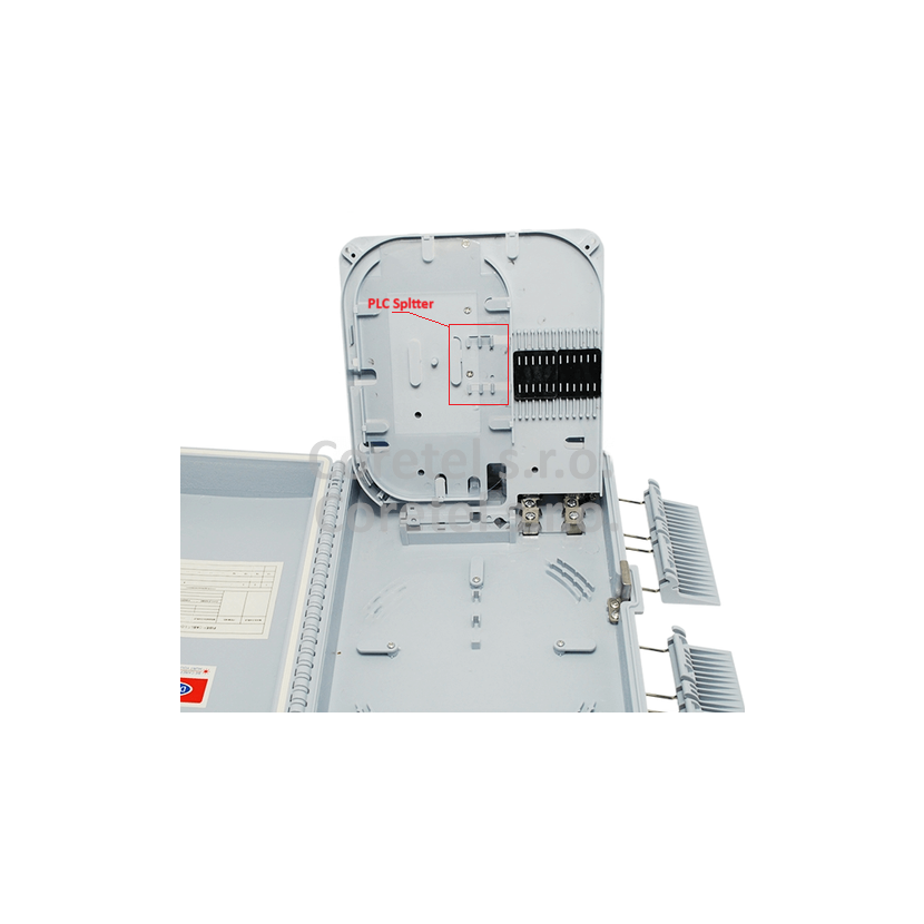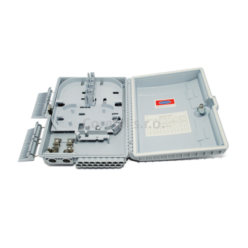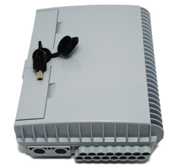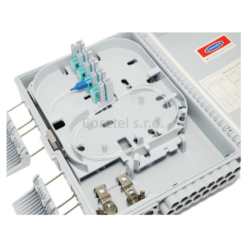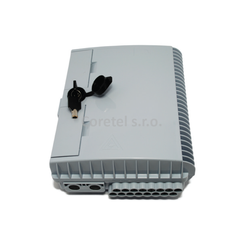 Xoptic FTTx BOX C16 priebežný/zámok s kľúčikom + CLIP - optický vonkajší box s kazetou (uchytenie na stenu/stĺp) pre 16 x SC simplex adaptér, 2 priebežne silikónové vstupy, uzamykateľné prevedenie zámok s kľúčikom + CLIP