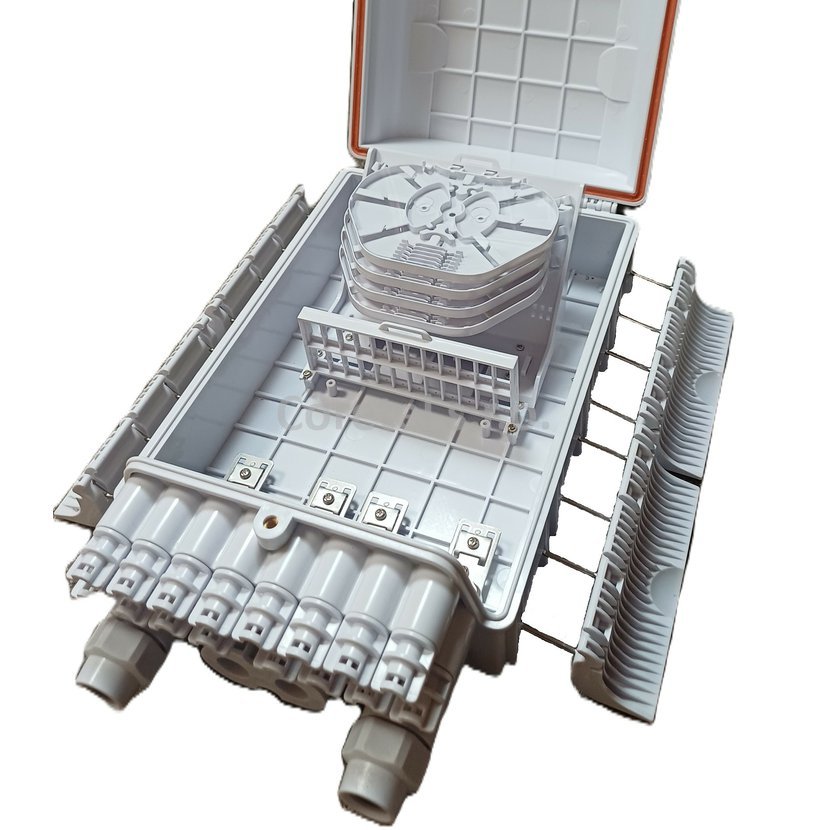 FTTx box G24 (2x PG) je vybavený 2+24 vstupnými/výstupnými portami. Tento typ spoja sa používa na ochranu káblov z optických vlákien a splittrov. Box je vyrobený z kvalitného plastu odolného voči UV žiareniu, nízkym (-40°C) a vysokým (+60°C) teplotám a chemickým látkam, vďaka čomu je spoj vhodný pre nadzemné, potrubné a podzemné inštalácie. Má stupeň krytia IP65.