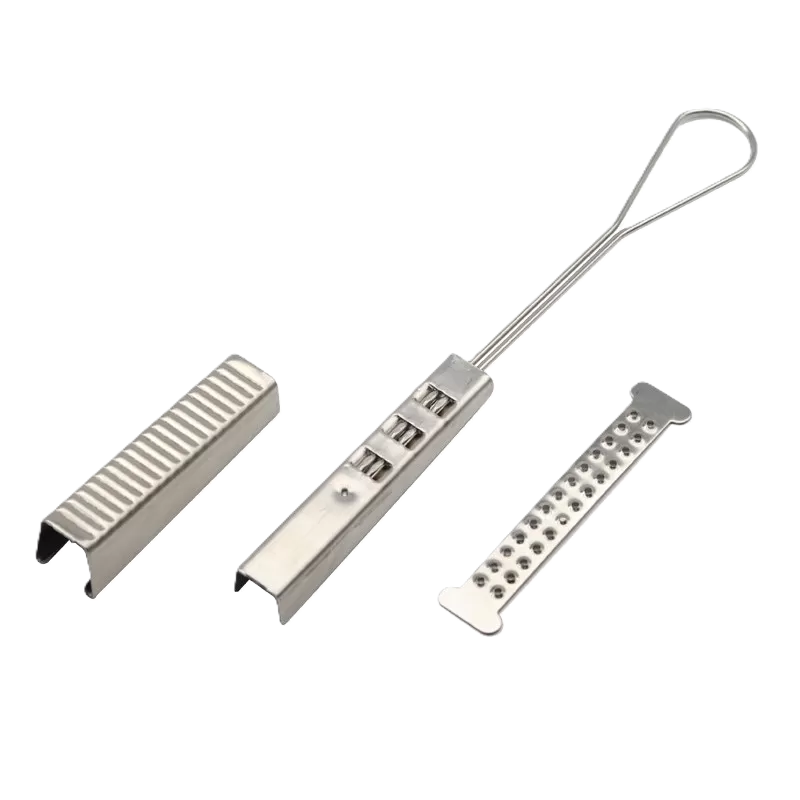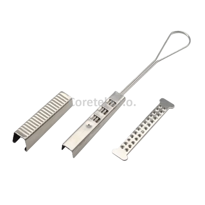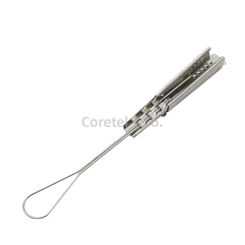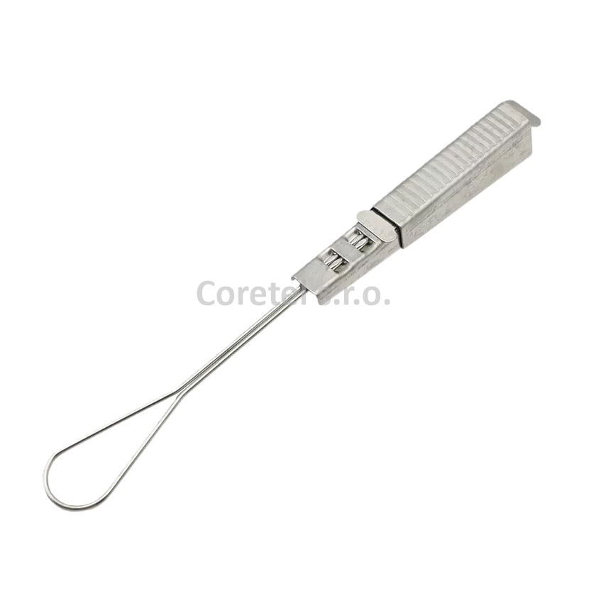 Kotvanauchytenieplochýchoptickýchkáblov.Špeciálnakotvaurčenápresamonosný kábel typu FLAT Drop, ktorej profil je obdĺžnikového tvaru.Vyrobená je z kovaného oceľového plechu, čo zaručujevyššiuodolnosťproti poveternostnýmpodmienkam.