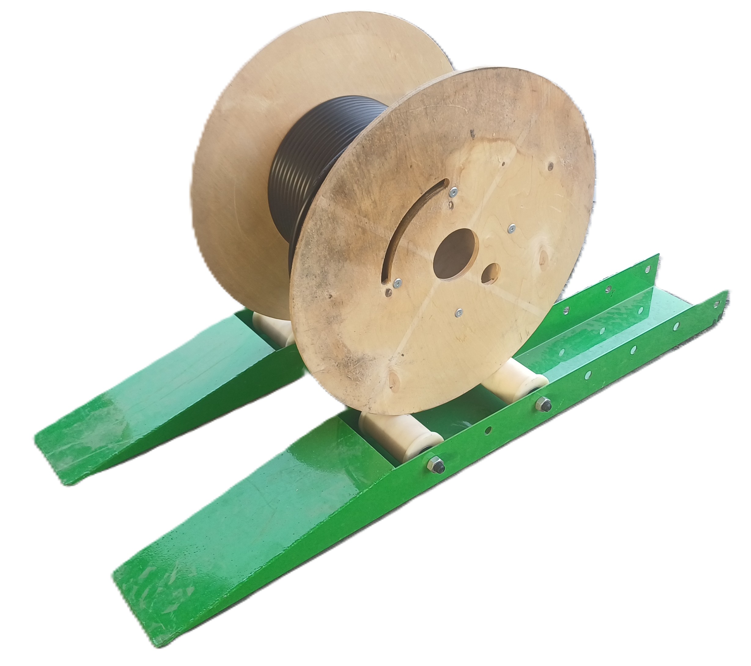 Horizontálny stojan sa používa na odvíjanie alebo navíjanie kábla na bubon umiestnený na cievkach. Stojany výrazne zjednodušujú prácu s ťažkými bubnami na stavenisku. Ľahká, robustná a stabilná konštrukcia umožňuje bezpečnú a rýchlu prácu s bubnami.