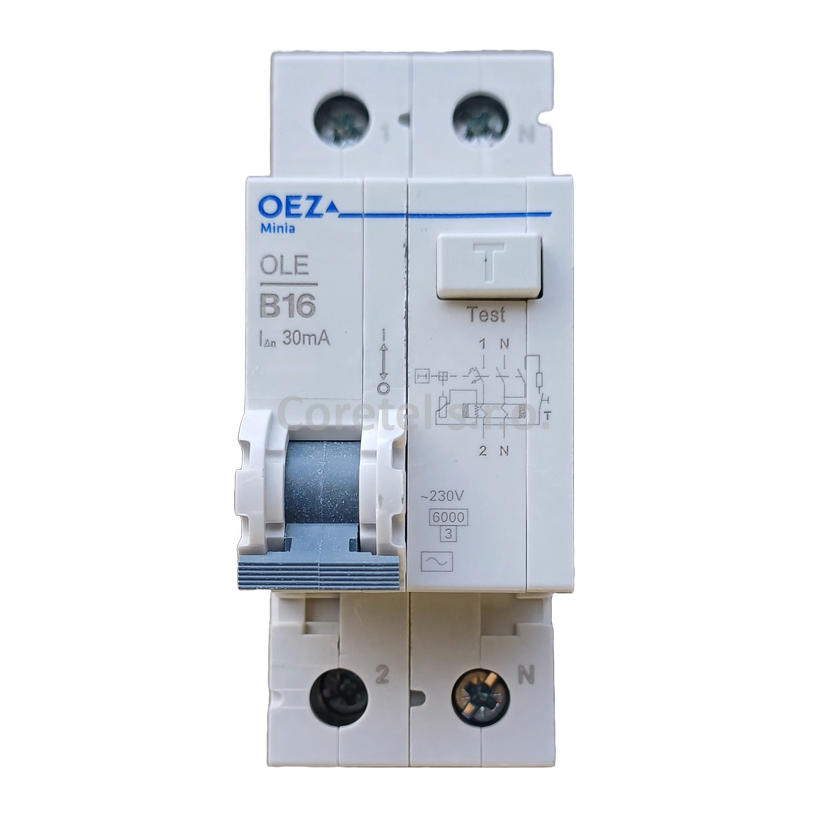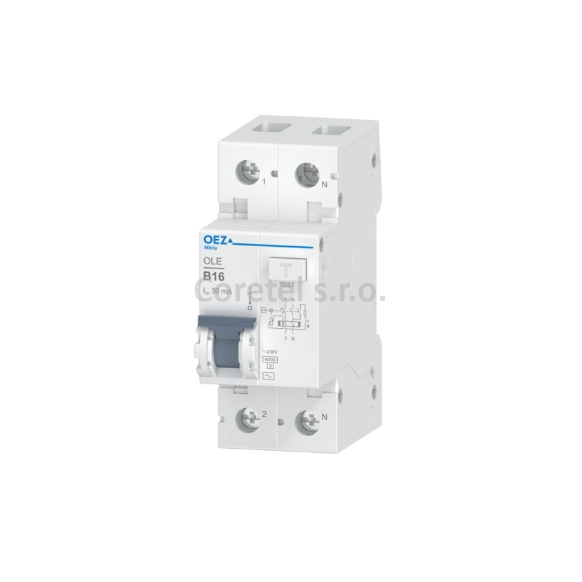 Prúdový chránič s ističom OLE-16B-1N-030AC - 1p+N/B16A/30mA/AC/6kA - OEZ:38315