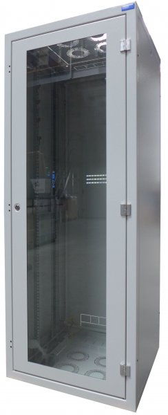 kaleným sklom. Dvere (uhol max. otvorenia 180°, 3x vonkajší pánt) sú osadené cylindrickým zámkom s jednobodovým zamykaním. Ku každému zámku sú dodávané dva kľúče (celkom 8 ks). Odnímateľný zadný zákryt aj bočné zákryty (sila plechu 1,3 mm) sú uchytené pomocou zapustených cylindrických zámkov na totožný kľúč ako majú dvere. V zadnom zákryte je integrovaný vylamovací káblový priechod pre vstup kabeláže. Bočné aj zadné zákryty sú zameniteľné. V strope aj dne sú vetracie otvory na odvod teplého vzduchu. Tieto otvory sú prispôsobené pre inštaláciu ventiačnéj jednotky z vnútorné strany rozvádzača. Ďalej je strop aj dno predchystané na prívod káblov. Rozvádzač je možné už v štandarde skladať do zostáv bez nutnosti odstránenia bočníc.