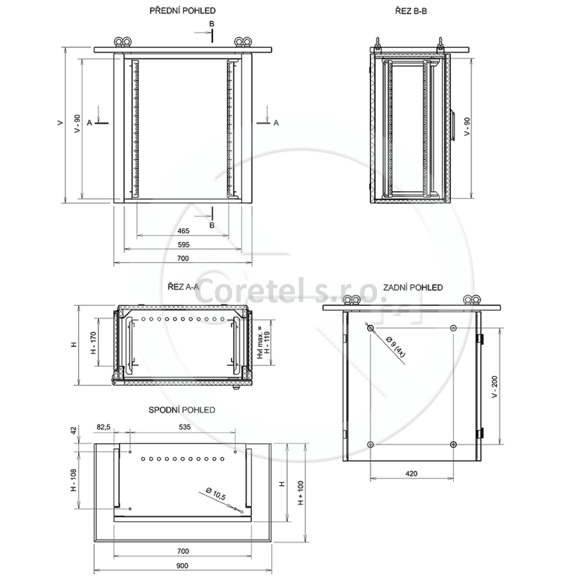• 12x káblové priechodky PG-16 v dne rozvádzača